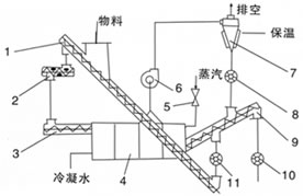 | 1.混料螺旋 7.除塵器 2.輸送攪拌機(jī) 8.關(guān)風(fēng)機(jī) 3.供料螺旋 9.卸料螺旋 4.干燥機(jī) 10.關(guān)風(fēng)機(jī) 5.調(diào)節(jié)閥 11.關(guān)風(fēng)機(jī) 6.風(fēng)機(jī) | ![]() |